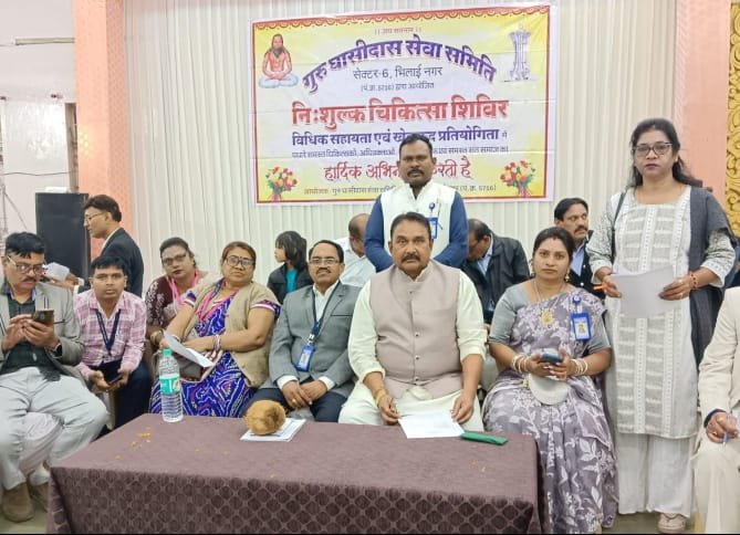 भिलाई नगर। गुरु घासीदास सेवा समिति, सेक्टर-6 भिलाई नगर द्वारा प्रतिवर्ष की भांति इस वर्ष भी परमपूज्य गुरु घासीदास जी की 269वीं जयंती के पावन अवसर पर तीन दिवसीय कार्यक्रम का आयोजन किया जा रहा है। आयोजन के प्रथम दिवस पर निःशुल्क चिकित्सा शिविर, सतनाम सामान्य ज्ञान प्रतियोगिता एवं खेलकूद प्रतियोगिताओं का सफल आयोजन संपन्न हुआ। निःशुल्क चिकित्सा शिविर का संचालन वरिष्ठ चिकित्सक एवं समाजसेवी डॉ. ए.डी. बनर्जी के नेतृत्व में किया गया, जिसमें विभिन्न विशेषज्ञ चिकित्सकों ने अपनी सेवाएँ प्रदान कीं। शिविर के अंतर्गत रक्तदान शिविर का भी आयोजन किया गया, जिसमें बड़ी संख्या में नागरिकों ने उत्साहपूर्वक भाग लिया। चिकित्सा शिविर में कुल 300 महिलाओं एवं 250 पुरुषों ने पंजीयन कराकर स्वास्थ्य लाभ प्राप्त किया। नेत्र जांच कक्ष में सर्वाधिक भीड़ देखने को मिली। इसके अतिरिक्त सूरज नर्सिंग होम के सहयोग से आवश्यक चिकित्सकीय सुविधाएँ भी उपलब्ध कराई गईं। कार्यक्रम का शुभारंभ उपस्थित चिकित्सकों एवं समिति पदाधिकारियों द्वारा गुरु घासीदास बाबा के तैलचित्र पर दीप प्रज्वलन कर किया गया। स्वागत भाषण समिति अध्यक्ष श्री बी.एल. कुर्रे ने दिया। समापन अवसर पर गुरु घासीदास सेवा समिति द्वारा सभी चिकित्सकों को पुष्पगुच्छ एवं स्मृति चिन्ह भेंट कर सम्मानित किया गया। कार्यक्रम का आभार प्रदर्शन महासचिव श्री एन.आर. गिलहरे ने किया, जबकि मंच संचालन समिति सचिव श्री राजेन्द्र महिलांग द्वारा किया गया।