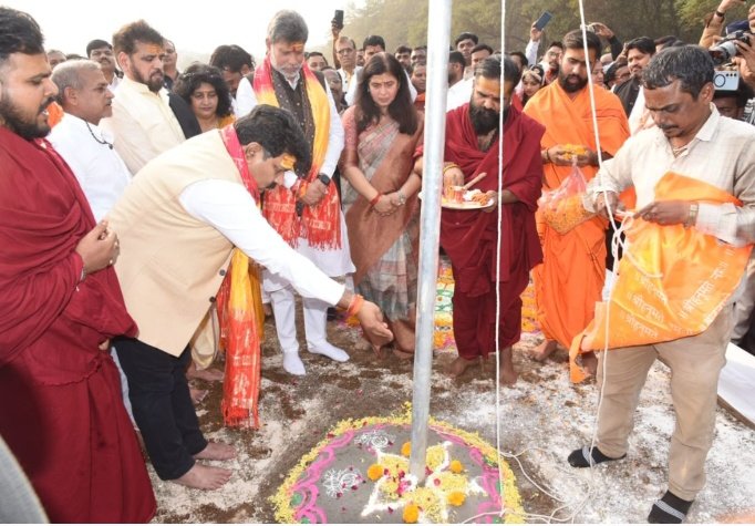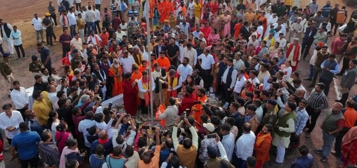 छत्तीसगढ़/भिलाई । सनातन धर्म के ध्वजवाहक पंडित धीरेंद्र शास्त्री जी की दिव्य हनुमंत कथा के प्रथम चरण के अंतर्गत आज जयंती स्टेडियम मैदान में भव्य ध्वज पूजन समारोह का आयोजन किया गया। कार्यक्रम में प्रदेश भाजपा अध्यक्ष किरण सिंह देव ने विधि-विधान से धरा व ध्वज पूजन कर हनुमान जी का भगवाध्वज फहराकर दिव्य हनुमंत कथा की तैयारियों का श्रीगणेश किया।