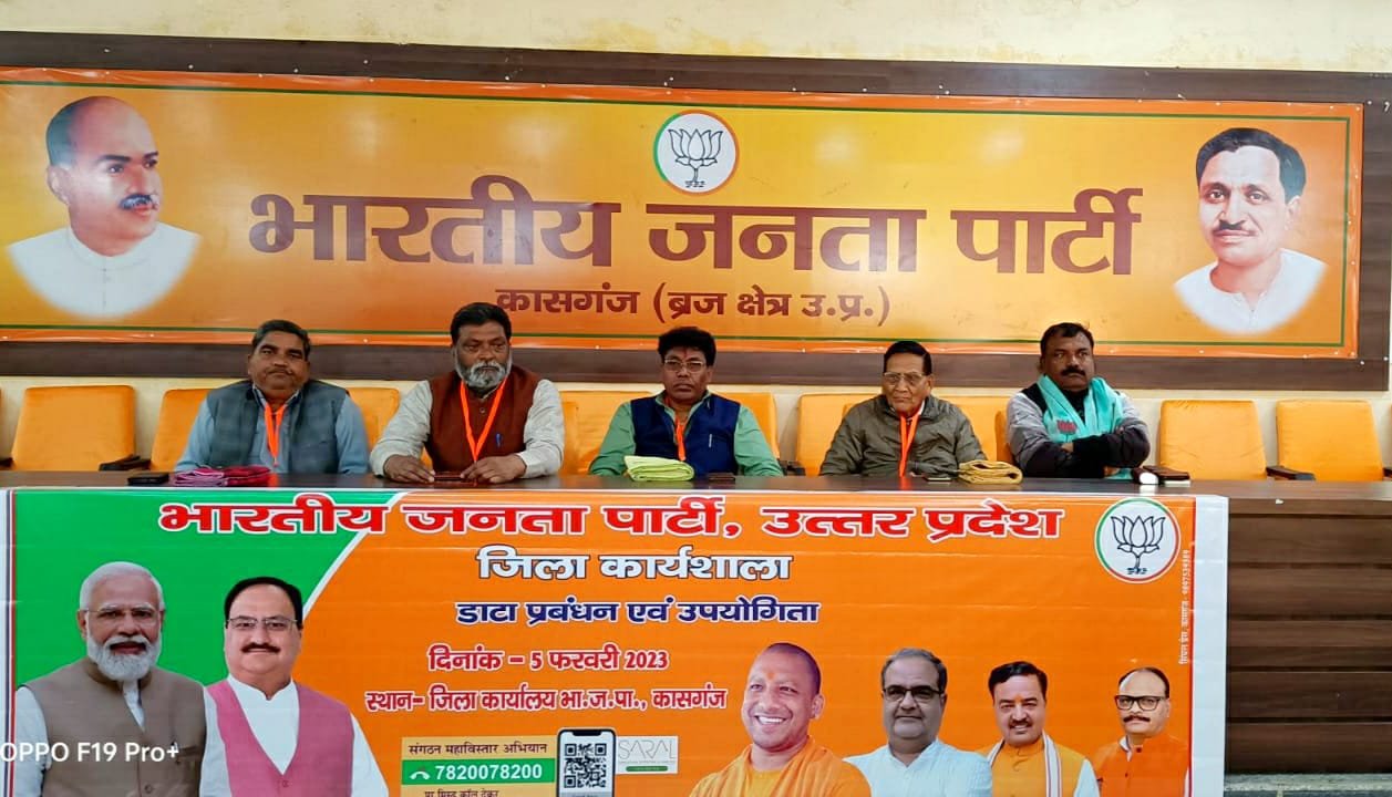 उत्तर प्रदेश/कासगंज। भाजपा जिला कार्यालय पर डाटा प्रबंधन व उपयोग विषय पर एक दिवसीय कार्यशाला आयोजित की गई। कार्यशाला की अध्यक्षता करते हुए भाजपा जिलाध्यक्ष केपी सिंह सोलंकी ने बूथ स्तर पर पार्टी की मजबूती और संगठन विस्तार को लेकर चर्चा की।