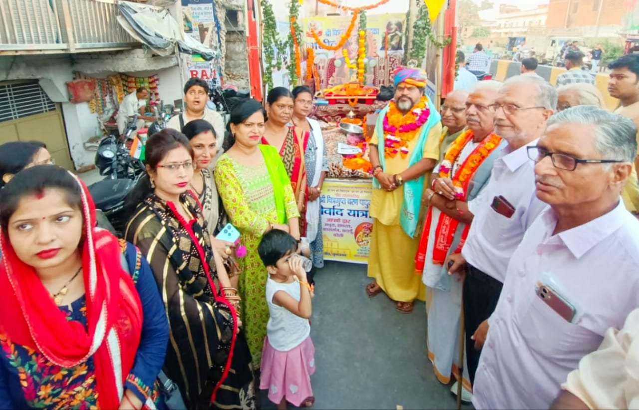 चित्रगुप्त भगवान की चरण पादुका यात्रा पर खूब बरसे फूल, जगह-जगह हुआ स्वागत