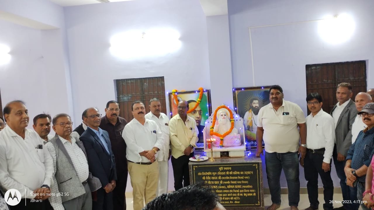 दुर्ग/भिलाई। संत शिरोमणि गुरु रविदास भवन शिवाजी नगर वार्ड क्रमांक 23 खुर्सीपार भिलाई में भिलाई इस्पात संयंत्र एससी एसटी एम्पलाइज एसोसिएशन के तत्वाधान में संविधान दिवस पर परिचर्चा का आयोजन किया गया। जिसमें भारतीय लोकतंत्र में वर्तमान संवैधानिक परिस्थितियों एवं भविष्य में चुनौतियां पर चर्चा आयोजित थी।