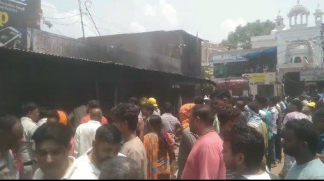 जूते चप्पल की दुकान में आग लगने से लाखों का नुकसान होने की संभावना