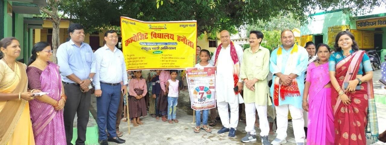 उत्तर प्रदेश /कासगंज। विकास खंड क्षेत्र के कंपोजिट विद्यालय हनौता में बुधवार को स्कूल चलो अभियान कार्यक्रम हुआ। कार्यक्रम का शुभारंभ मां सरस्वती की पूजा अर्चना के साथ भाजपा जिलाध्यक्ष नीरज शर्मा, जिला उपाध्यक्ष कौशल किशोर साहू, सह कोषाध्यक्ष रानू वर्मा, बीएसए सूर्य प्रताप सिंह, खंड शिक्षा अधिकारी राजकुमार सिंह के सानिध्य में हुआ।