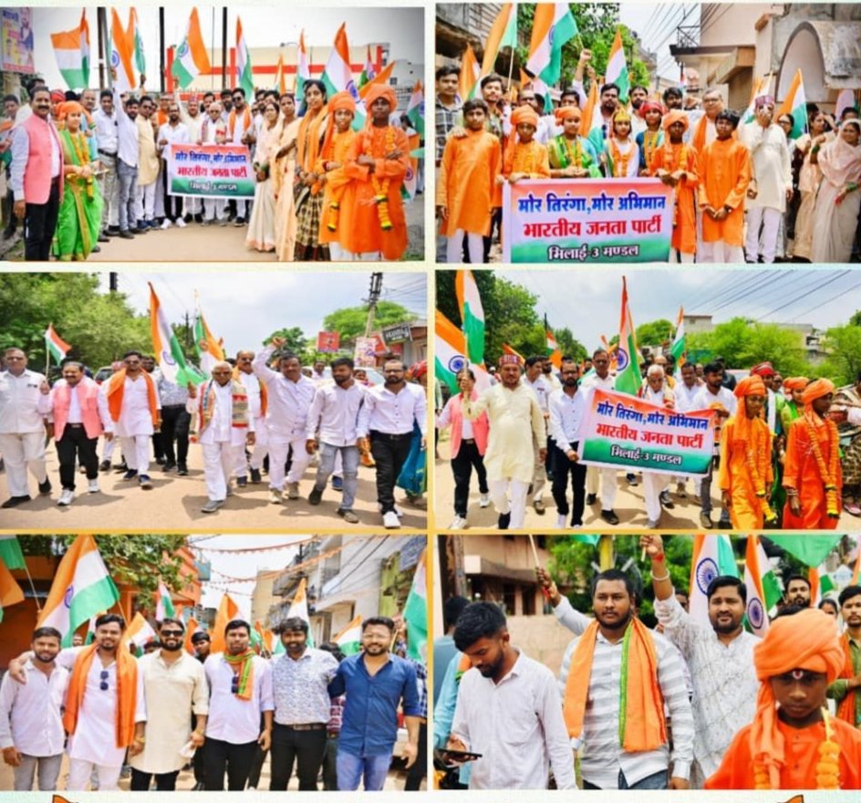 यात्रा शांतिनगर, इमली बगीचा, महामाया पारा, नूतन चौक, बाजार क्षेत्र, इंदिरा पारा, नवीन कन्या शाला होते हुए मंगल भवन में संपन्न हुई। सम्पूर्ण वार्ड व बूथ तिरंगे के नारों से गूंज उठा। स्थानीय नागरिकों ने भी गौरवपूर्वक अपने घरों में तिरंगा फहराने का संकल्प लिया। यात्रा में प्रमुख रूप से डॉ राधेश्याम वर्मा, दिलीप पटेल, रामखिलावन वर्मा ,विपिन चंद्राकर ,सीता साहू,श्याम सुंदर जायसवाल ,समीर अग्रवाल, तुलसी मरकाम ,बाल मुकुंद वर्मा, निर्मला भारती, द्रोपदी वर्मा, मोनेस गौतम ,हूपेन चन्द्र, संदीप पाली, नारायण निर्मलकर,धनेशवरि साहू,तुलसी ध्रुव फिरोज फारुकी ,गुरुचरण सिंह ,प्रेमलता चंद्राकर, तोरण सोनी, कृष्ण कुमार वर्मा, राजकुमार साहू ,पद्मिनी साहू, महेंद्र साहू ,रूपेन्द्र यादव, सुरेंद्र श्रीवास्तव,तेजस पाल, दीप पटेल ,रीना चंद्राकर ,अभिषेक शर्मा, सम्यक तिवारी, हरिलाल सोनी ,अशोक सोनी,शिवा यादव के साथ भारी संख्या में कार्यकर्ता मौजूद रहे।